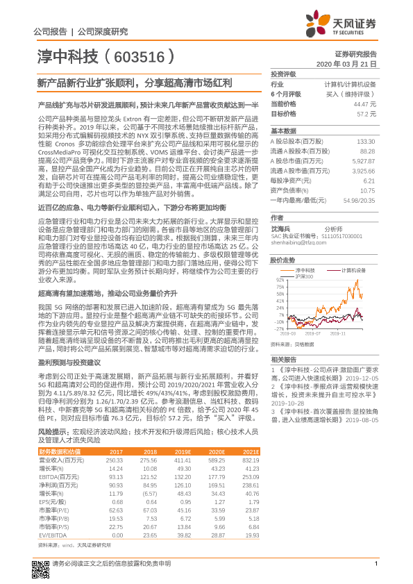 【天风证券】【20200321】淳中科技-新产品新行业扩张顺利,分享超高清市场红利-15页