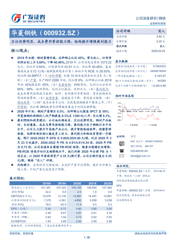 【广发证券】【20200323】华菱钢铁(000932.SZ):区位优势明显、成本费用管控能力强,结构提升增强盈利能力-25页