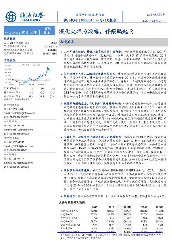 【海通证券】【20200324】20200324-海通证券-神州数码-000034.SZ-公司研究报告:深化大华为战略,伴鲲鹏起飞-22页