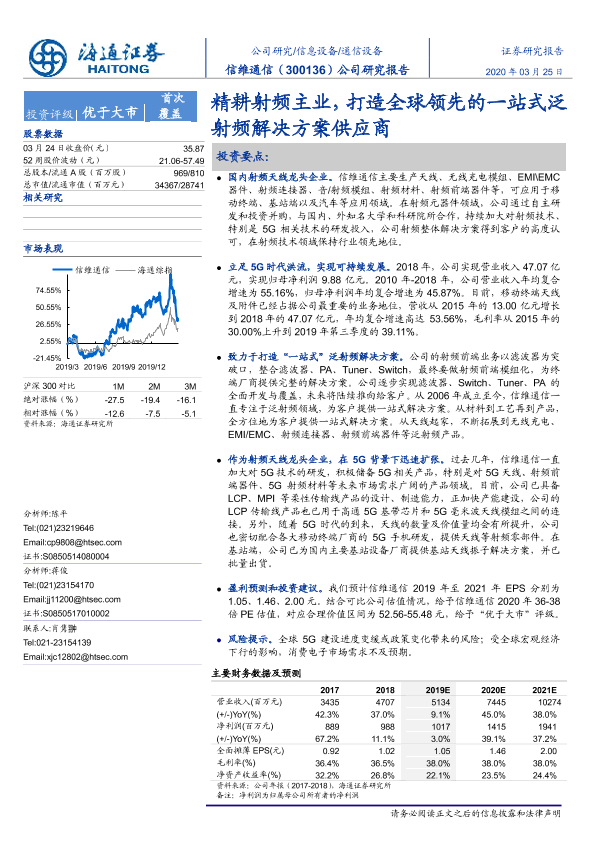 【海通证券】【20200325】信维通信-300136.SZ-公司研究报告:精耕射频主业,打造全球领先的一站式泛射频解决方案供应商-41页