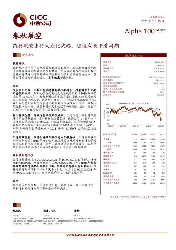 【中金公司】【20200325】春秋航空:践行航空出行大众化战略,稳健成长平滑周期-27页