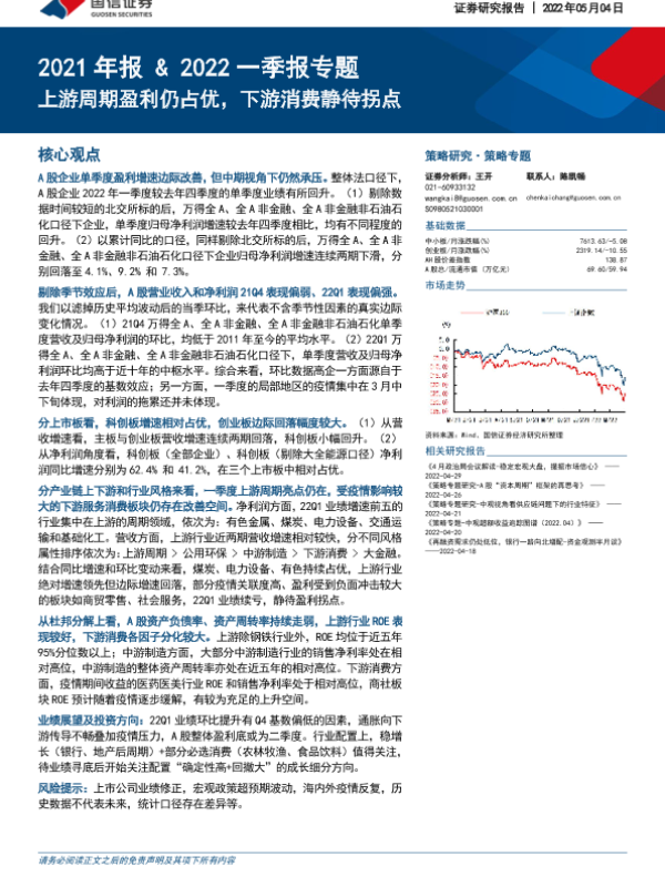 【国信证券】【20220504】2021年报&2022一季报专题:上游周期盈利仍占优,下游消费静待拐点-21页