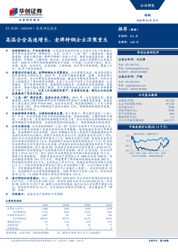 【华创证券】【20200329】20200329-华创证券-ST抚钢-600399.SH-深度研究报告:高温合金高速增长,老牌特钢企业涅槃重生-23页