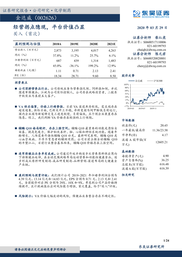VA价格 保健品业务 营养品行业 辅酶Q10 金达威