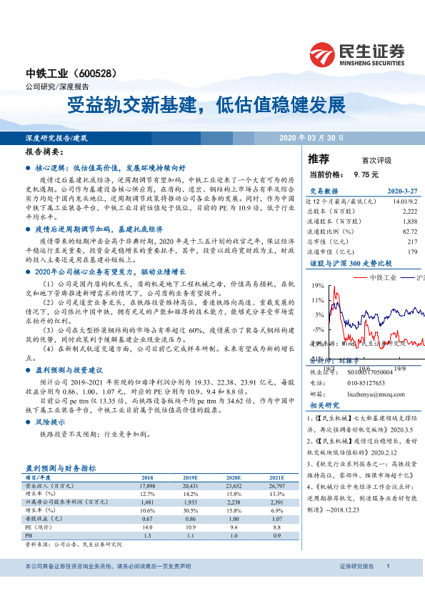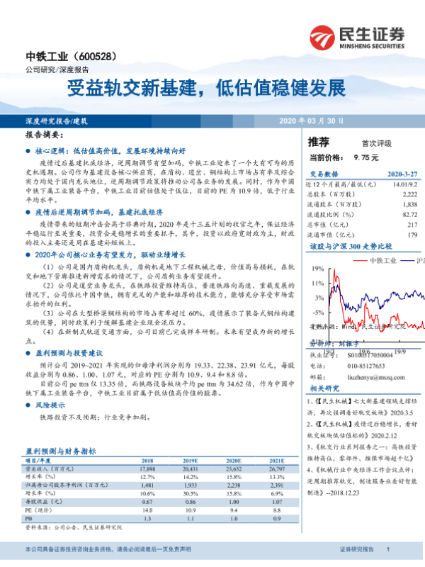 【民生证券】【20200330】受益轨交新基建,低估值稳健发展-22页