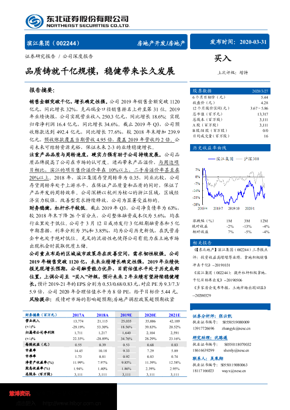 业绩分析 市场表现 房地产开发 滨江集团 财务状况