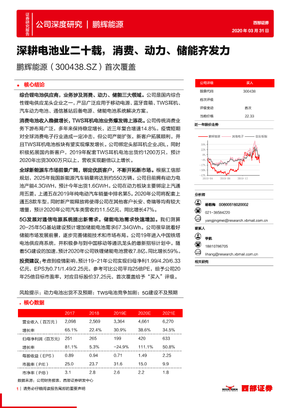 【西部证券】【20200331】20200331-西部证券-鹏辉能源-300438.SZ-首次覆盖:深耕电池业二十载,消费、动力、储能齐发力-41页