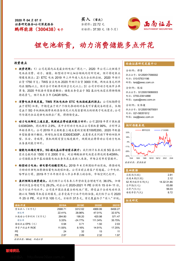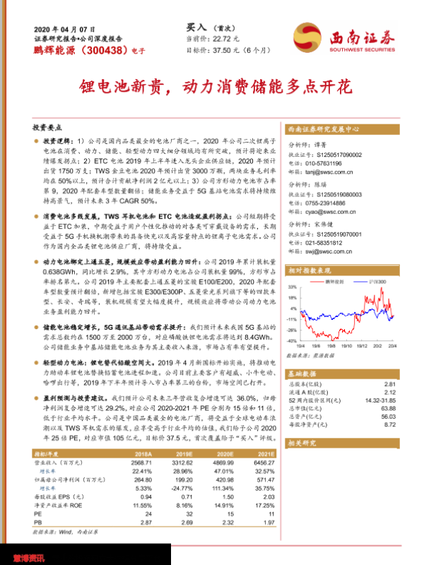 【西南证券】【20200407】20200407-西南证券-鹏辉能源-300438.SZ-锂电池新贵,动力消费储能多点开花-31页