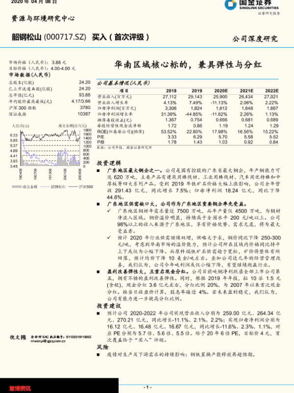 【国金证券】【20200408】20200408-国金证券-韶钢松山-000717.SZ-华南区域核心标的,兼具弹性与分红-19页