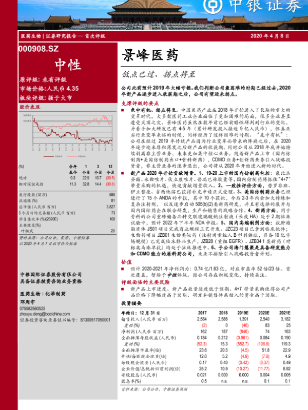 【中银证券】【20200408】景峰医药-000908.SZ-低点已过、拐点将至-27页