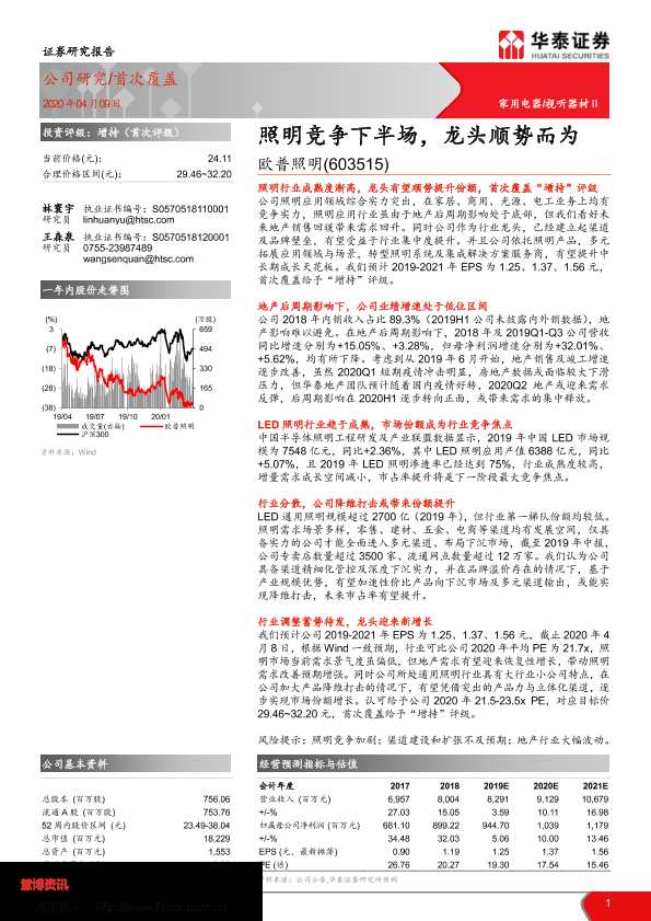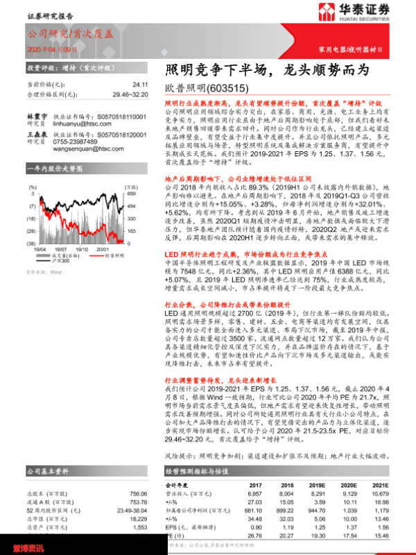 【华泰证券】【20200409】20200409-华泰证券-欧普照明-603515.SH-照明竞争下半场,龙头顺势而为-25页