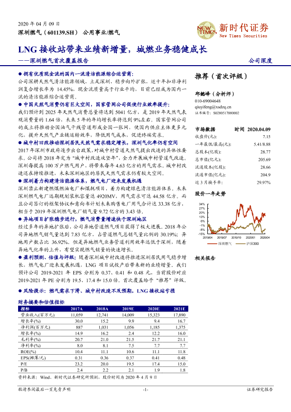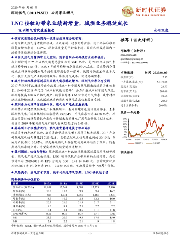 【新时代证券】【20200409】深圳燃气首次覆盖报告:LNG接收站带来业绩新增量,城燃业务稳健成长-41页