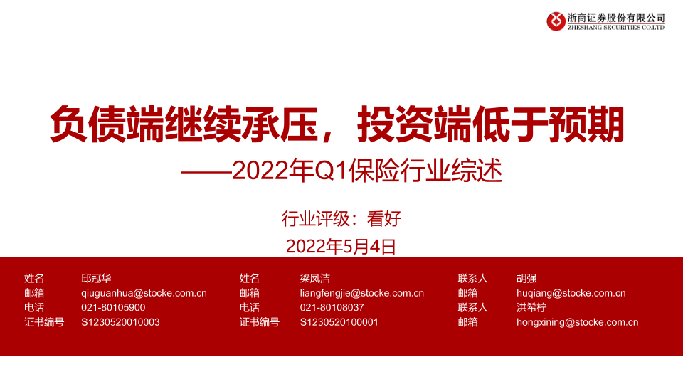 【浙商证券】【20220504】2022年Q1保险行业综述:负债端继续承压,投资端低于预期-21页