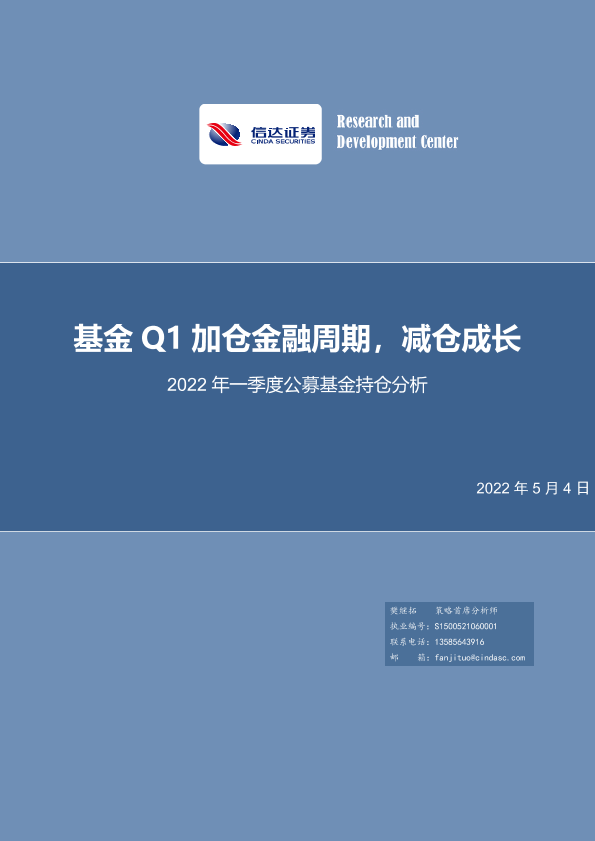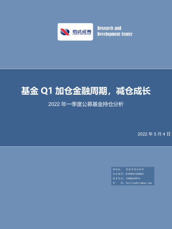 【信达证券】【20220504】2022年一季度公募基金持仓分析:基金Q1加仓金融周期,减仓成长-22页