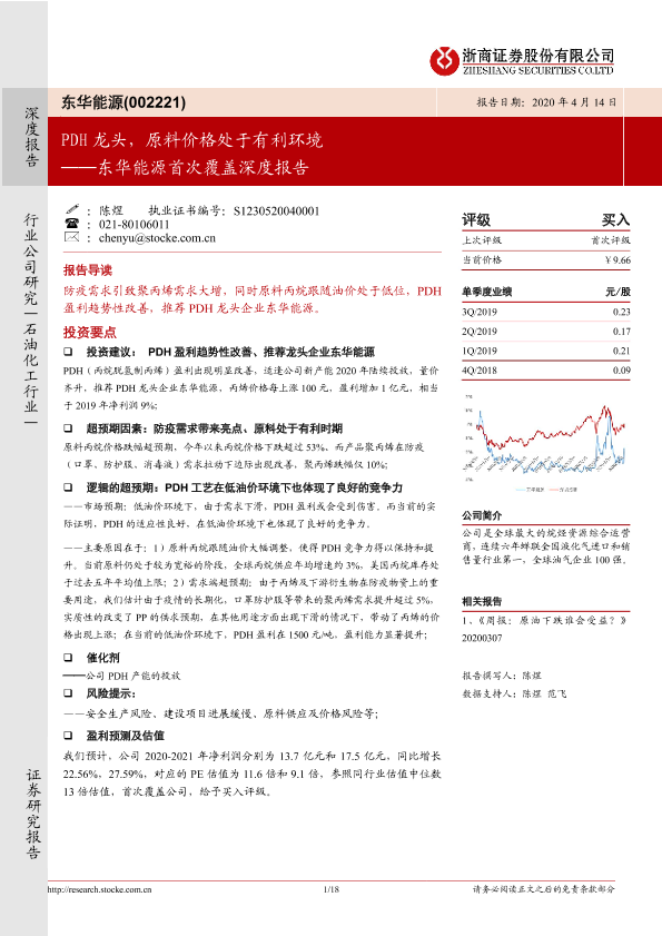 【浙商证券】【20200414】东华能源首次覆盖深度报告:PDH龙头,原料价格处于有利环境-18页