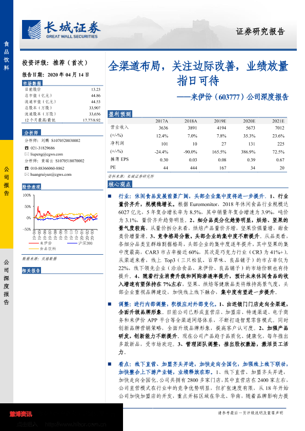 【长城证券】【20200414】来伊份-603777.SH-公司深度报告:全渠道布局,关注边际改善,业绩放量指日可待-34页