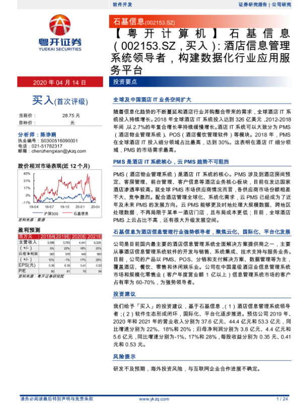 【粤开证券】【20200414】石基信息:酒店信息管理系统领导者,构建数据化行业应用服务平台-24页