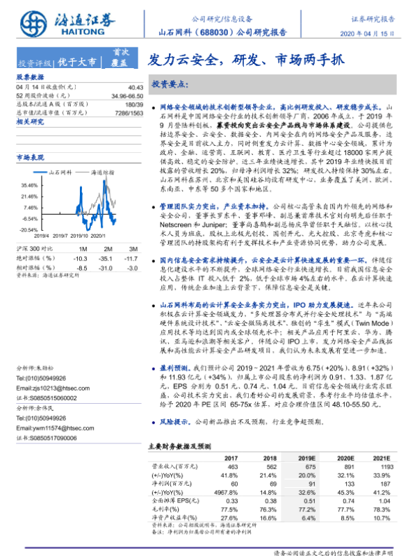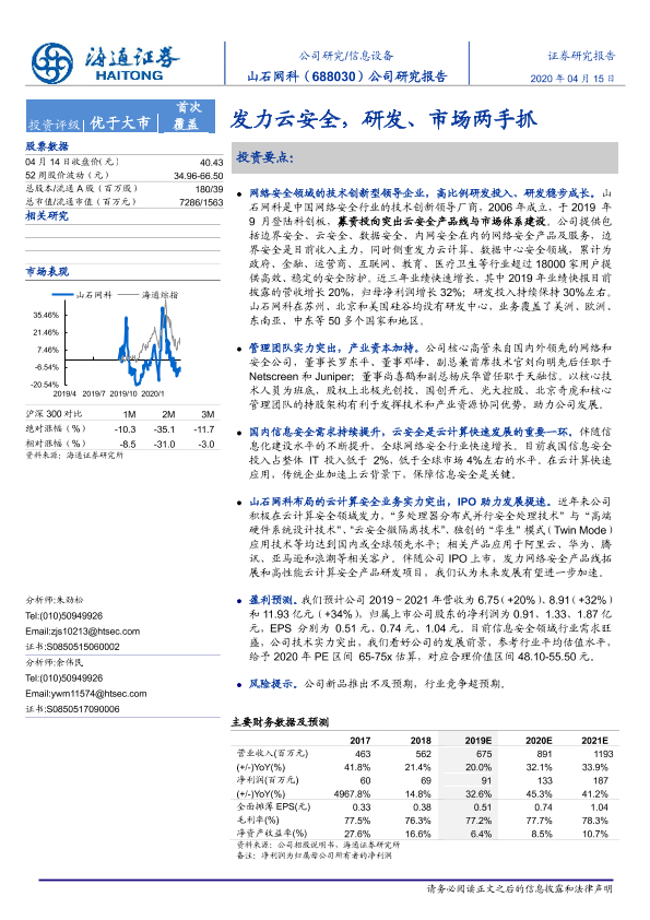 【海通证券】【20200415】20200415-海通证券-山石网科-688030.SH-公司研究报告:发力云安全,研发、市场两手抓-22页