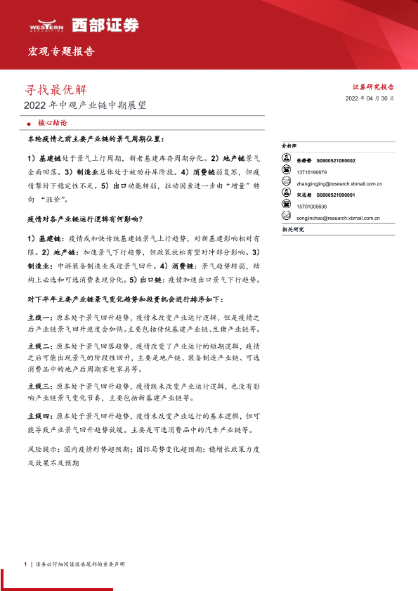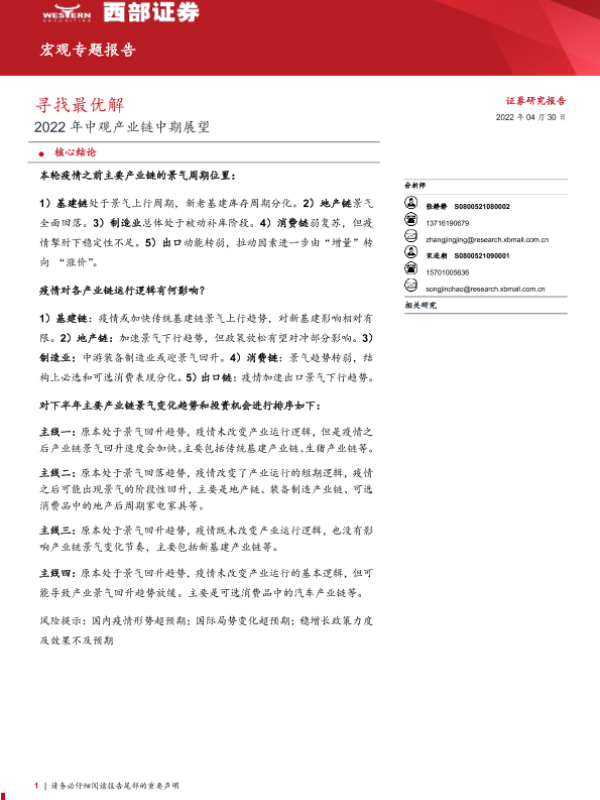 【西部证券】【20220430】2022年中观产业链中期展望:寻找最优解-20页