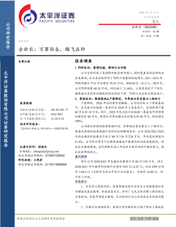 【太平洋证券】【20200416】金新农:万事俱备,腾飞在即-16页