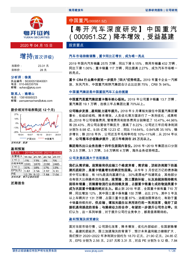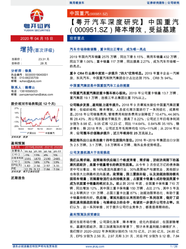 【粤开证券】【20200415】中国重汽 (000951.SZ)降本增效,受益基建-26页