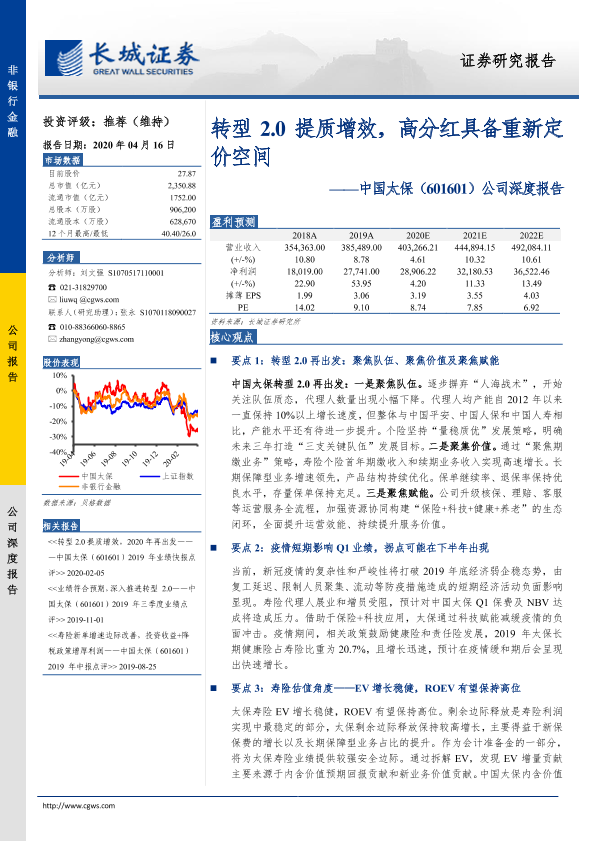 【长城证券】【20200416】20200416-长城证券-中国太保-601601.SH-公司深度报告:转型2.0提质增效,高分红具备重新定价空间-43页