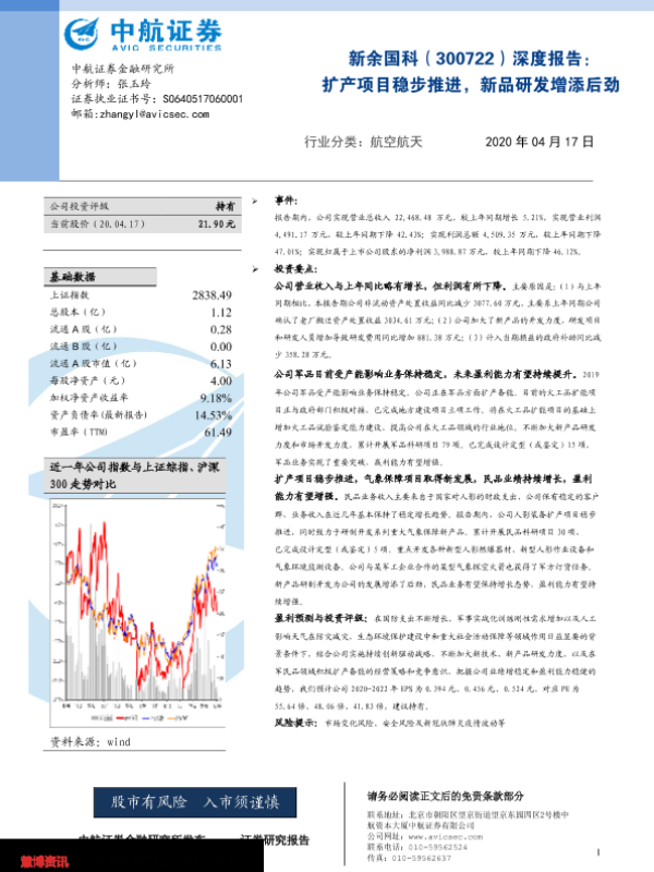 【中航证券】【20200417】新余国科:扩产项目稳步推进,新品研发增添后劲-30页