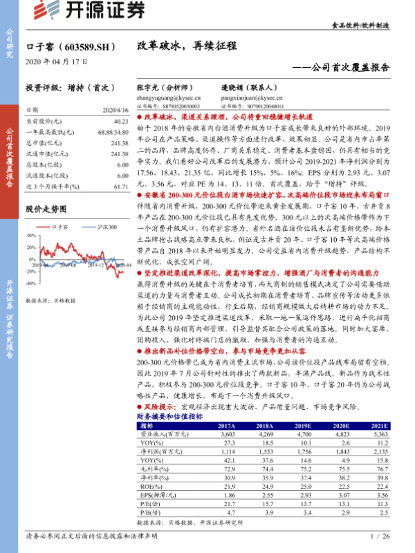 【开源证券】【20200417】20200417-开源证券-口子窖-603589.SH-公司首次覆盖报告:改革破冰,再续征程-26页