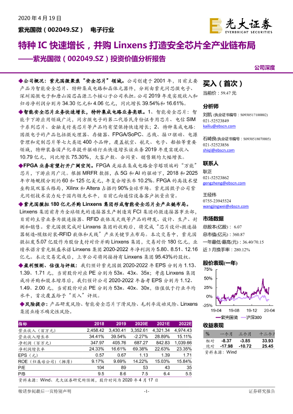 【光大证券】【20200419】紫光国微(002049.SZ)投资价值分析报告:特种IC快速增长,并购Linxens打造安全芯片全产业链布局-42页