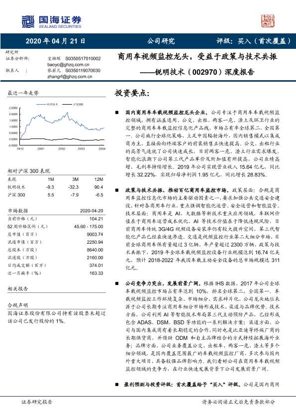 【国海证券】【20200421】20200421-国海证券-锐明技术-002970.SZ-深度报告:商用车视频监控龙头,受益于政策与技术共振-31页