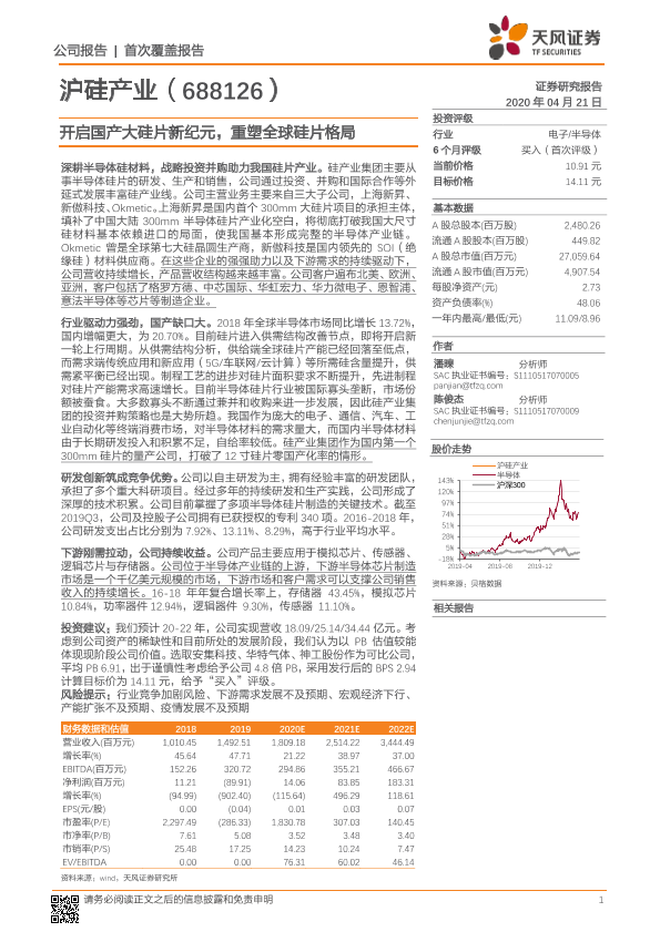 【天风证券】【20200421】开启国产大硅片新纪元,重塑全球硅片格局-30页