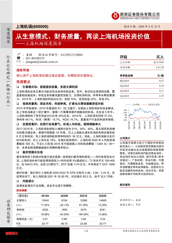 【浙商证券】【20200422】20200422-浙商证券-上海机场-600009.SH-上海机场深度报告:从生意模式、财务质量,再谈上海机场投资价值-24页