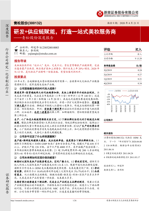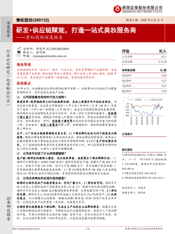【浙商证券】【20200421】青松股份深度报告:研发+供应链赋能,打造一站式美妆服务商-26页