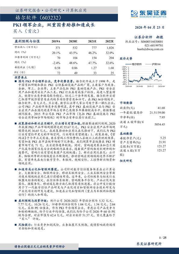 【东吴证券】【20200423】20200423-东吴证券-格尔软件-603232.SH-PKI领军企业,双重因素助推加速成长-25页