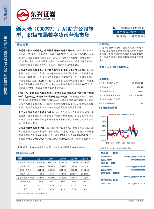 【东兴证券】【20200423】新大陆(000997):AI助力公司转型,积极布局数字货币蓝海市场-26页