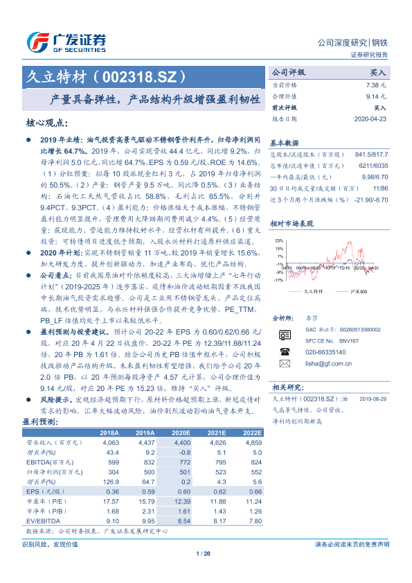 【广发证券】【20200423】久立特材(002318.SZ)产量具备弹性,产品结构升级增强盈利韧性-26页