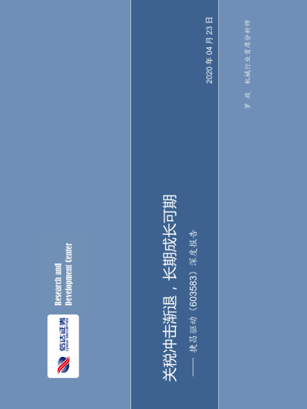【信达证券】【20200423】关税冲击渐退,长期成长可期——捷昌驱动(603583)深度报告-23页