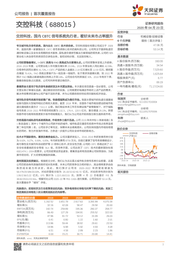 【天风证券】【20200423】交控科技:国内CBTC信号系统先行者,看好未来市占率提升-27页