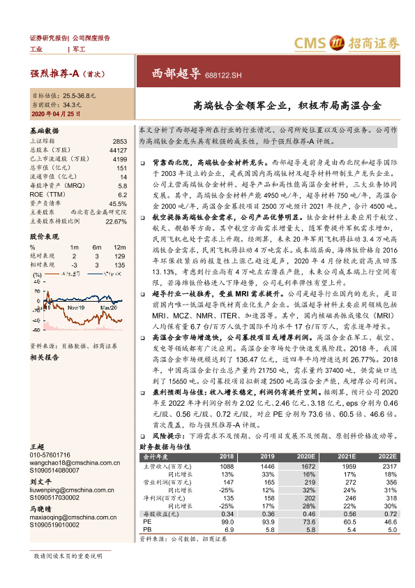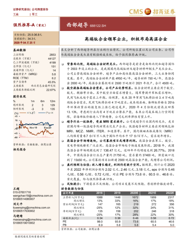 【海通证券】【20200425】西部超导-688122.SH-高端钛合金领军企业,积极布局高温合金-22页