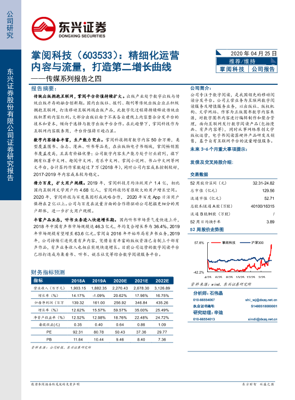 【东兴证券】【20200425】20200425-东兴证券-掌阅科技-603533.SH-传媒系列报告之四:精细化运营内容与流量,打造第二增长曲线-27页
