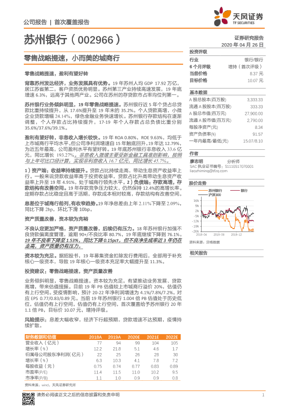 【天风证券】【20200426】零售战略提速,小而美的城商行-22页