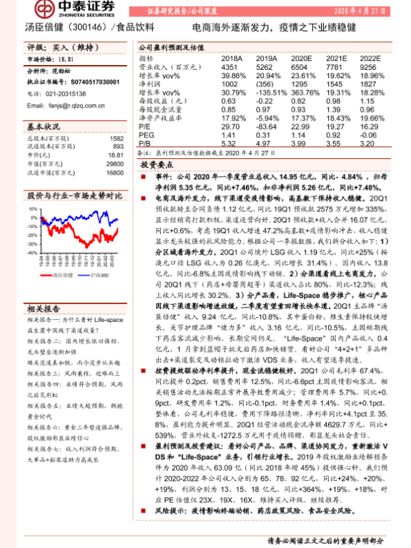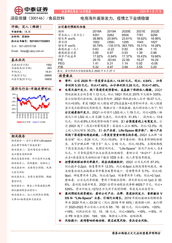 汤臣倍健 海外业务 电商发展 疫情应对 财务分析