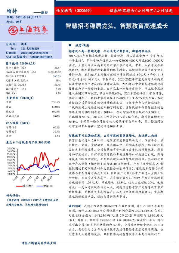 【上海证券】【20200427】佳发教育-300559.SZ-智慧招考稳居龙头,智慧教育高速成长-35页