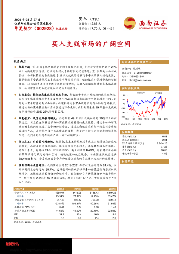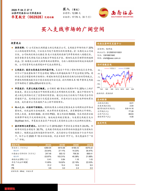 业绩预测 华夏航空 投资分析 支线航空 航空市场