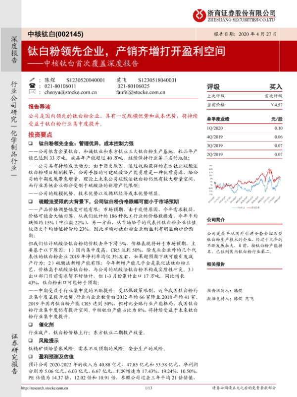 【浙商证券】【20200427】中核钛白首次覆盖深度报告:钛白粉领先企业,产销齐增打开盈利空间-13页