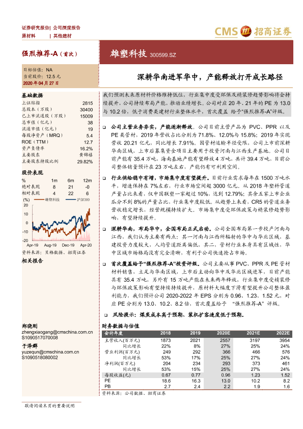 【海通证券】【20200427】雄塑科技-深耕华南进军华中,产能释放打开成长路径-23页