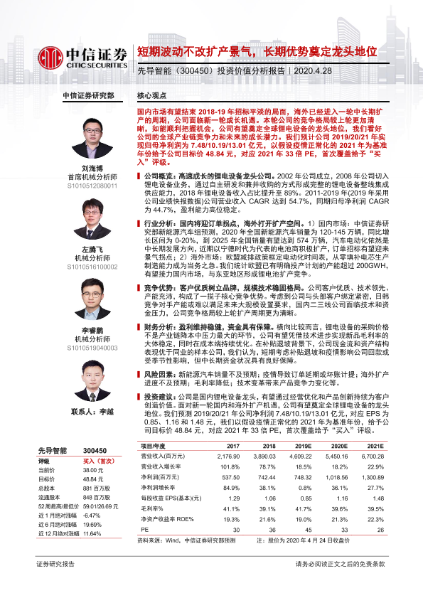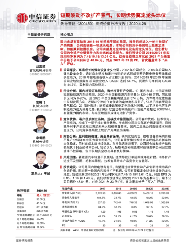 【中信证券】【20200428】20200428-中信证券-先导智能-300450.SZ-投资价值分析报告:短期波动不改扩产景气,长期优势奠定龙头地位-28页