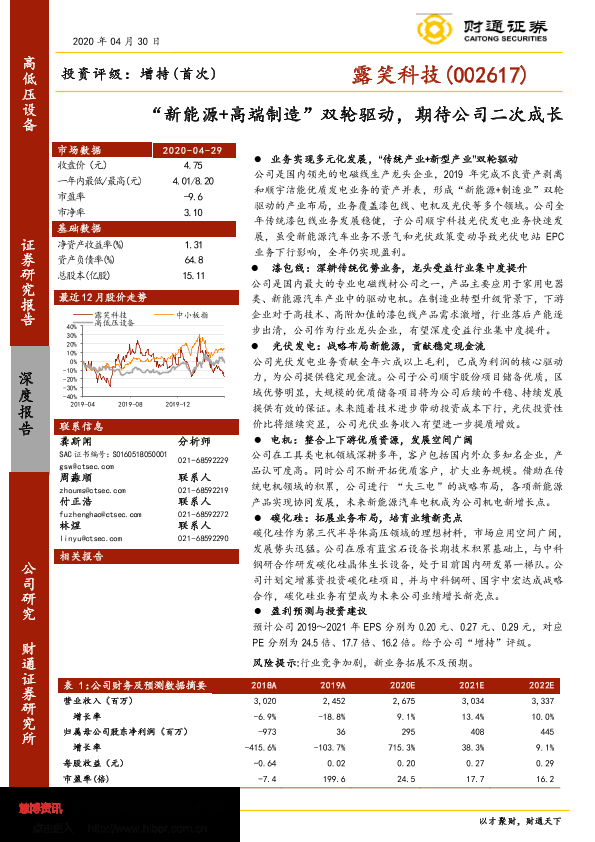 【财通证券】【20200430】“新能源+高端制造”双轮驱动,期待公司二次成长-24页