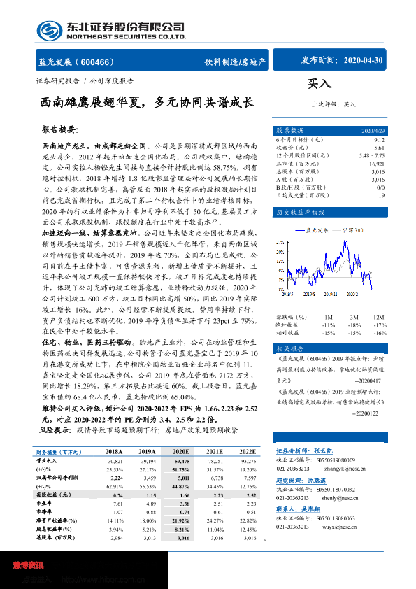 多元化发展 房地产 物业上市 蓝光发展 西南地区