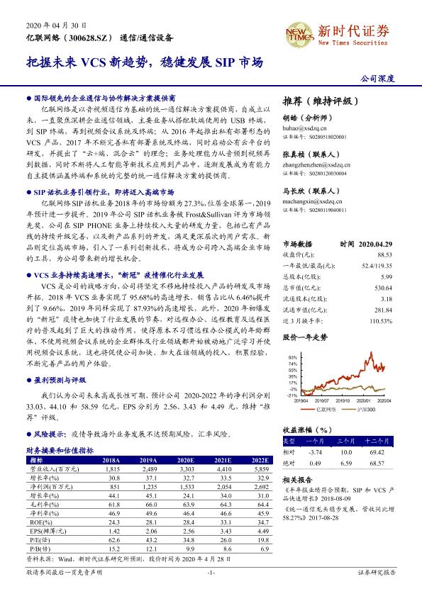 【新时代证券】【20200430】亿联网络-300628.SZ-把握未来VCS新趋势,稳健发展SIP市场-25页